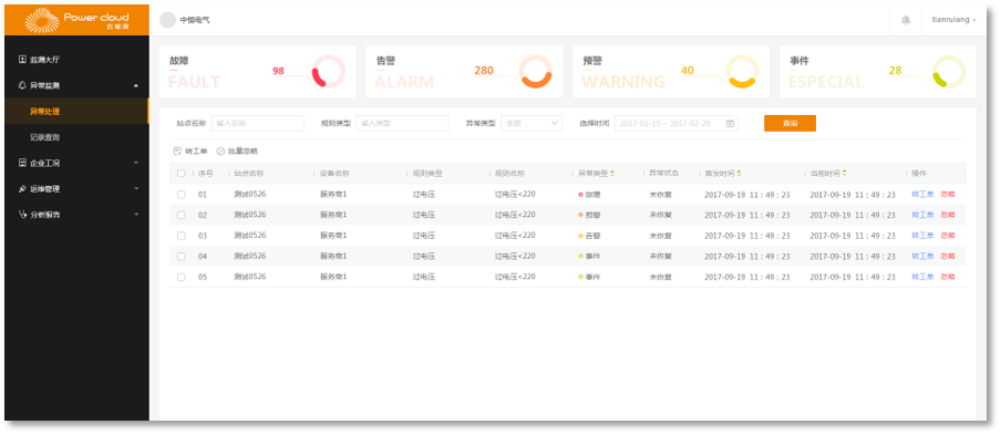 电工管理;抢修管理;工单管理;值班管理。
